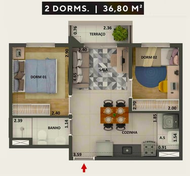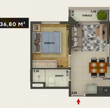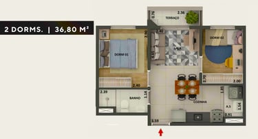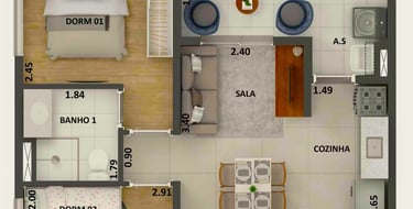 37m2 - 02 dorms. c/ sacada - Finais: 01, 02, 05, 06, 07, 08 e 11 (meio)