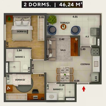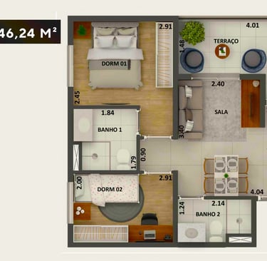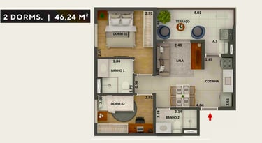 46m2 - 02 dorms. c/ sacada – Finais: 01 e 02 (ponta)