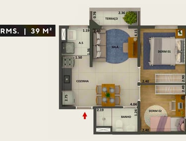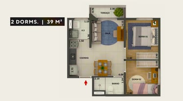 39m2 - 02 dorms. c/ sacada – Finais: 04 e 05 (ponta)