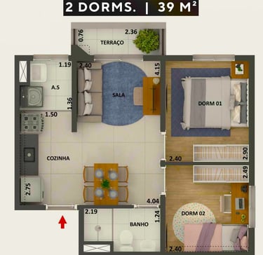 39m2 - 02 dorms. c/ sacada – Finais: 03 e 04 (ponta)