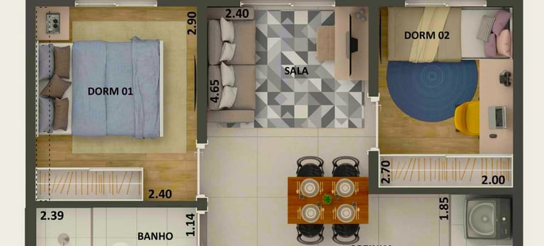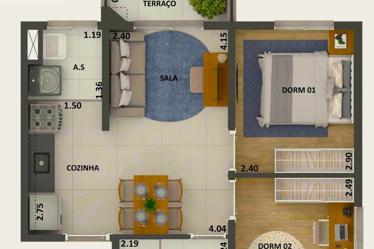 37m2 - 02 dorms. c/ sacada - Finais: 03, 04 e 07 (meio)