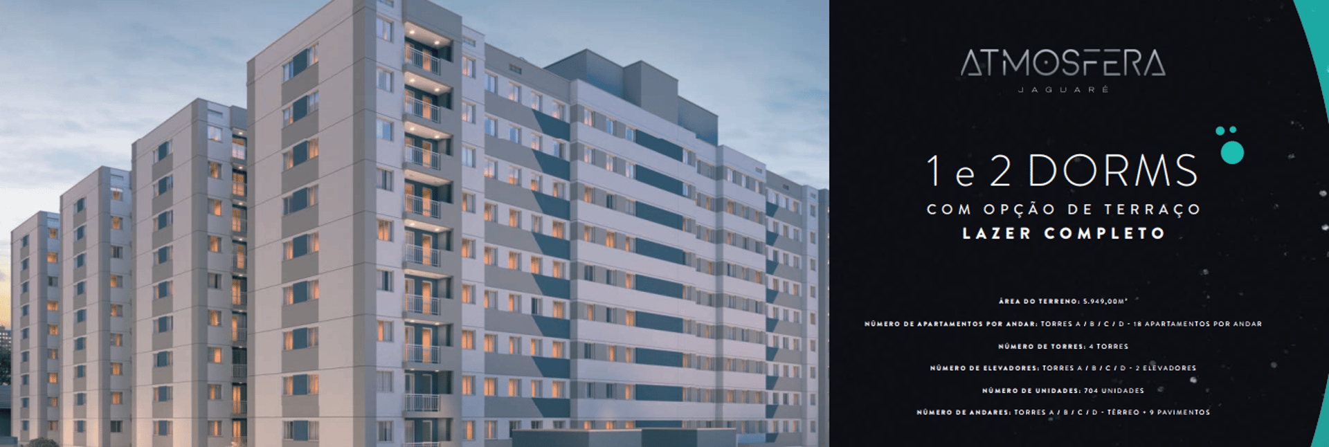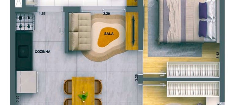 Tipologia: Apartamentos 1 e 2 dormitórios.
