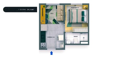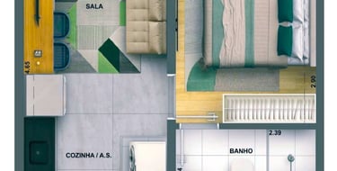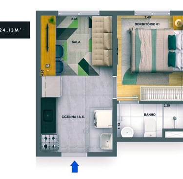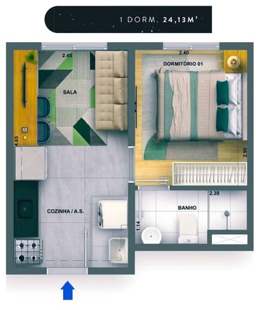 24m2 - 01 Dorm. sem terraço Finais: 02, 09, 11 e 18 (unidades de meio).