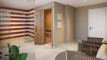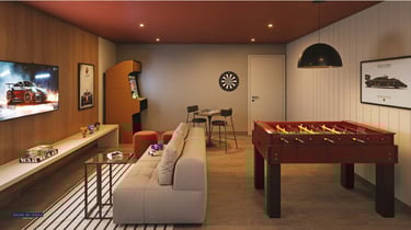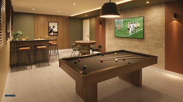 LAZER COBERTO: Brinquedoteca, Coworking, Festas, Fitness, Pet Care, Salão de Jogos, Delivery, Lavanderia, Sauna, Easy Market, Lobby, Sport Bar