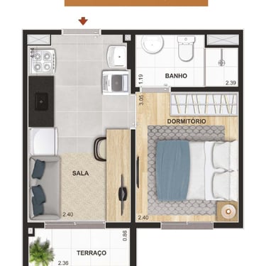 38m² - 02 Dorms. com terraço – Finais: 02,12 e 17 (unidades de meio)