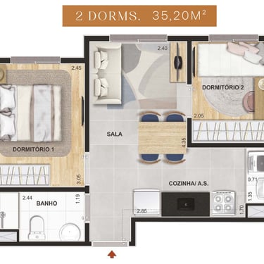 35m² - 02 Dorms. sem terraço – Finais: 16(unidades de meio).