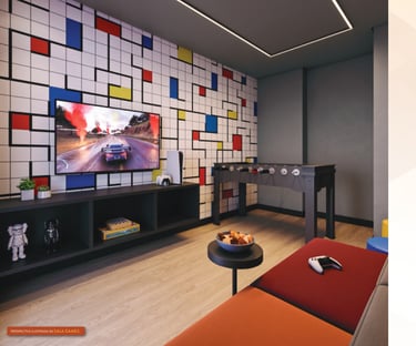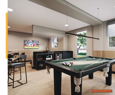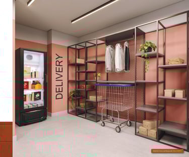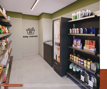 LAZER COBERTO: Brinquedoteca, Churrasqueira, Home Office, Lavanderia, Sala de Descanso, Sauna, Delivery, Oficina, Sala Games, Easy Market, Espaço Beleza, Fitness, Pet Care, Play Baby, Salão de festas, Sport Bar
