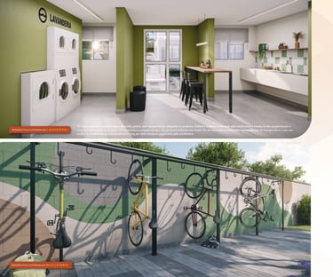 Piso laminado nos dormitórios. Duplo acionamento nos vasos sanitários. Arejadores nas torneiras. Persianas de enrolar (dormitórios das unidades com suíte). Infra para ar condicionado (dormitórios das unidades com suíte). Bancada em granito nos banheiros e cozinhas (unidades com suíte).