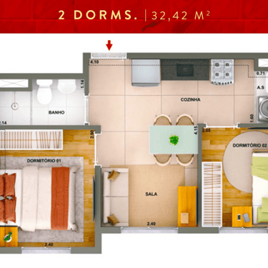 32m² - 02 Dorms. sem terraço – Final:11 (unidades de meio).