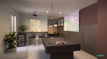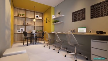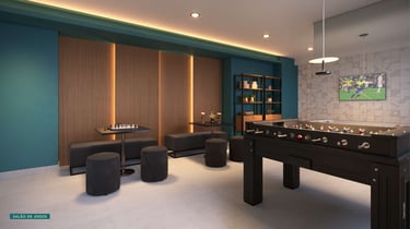 LAZER COBERTO: Brinquedoteca, Churrasqueira, Delivery, Fitness, Lavanderia, Oficina (2), Sala de Estudos (3), Sala de Jogos, Sala de Reunião (2), Easy Market, Espaço Beleza, Pet Care, Play Baby, Salão de Festas, Sport Bar