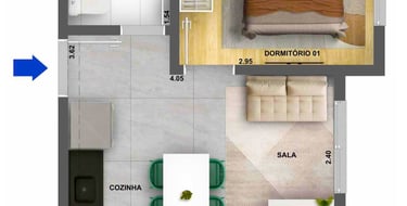 35m2 - 02 Dorms. sem terraço - Finais: 06, 09, 11, 12 e 13 (unidades de meio).