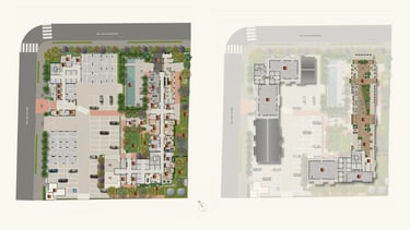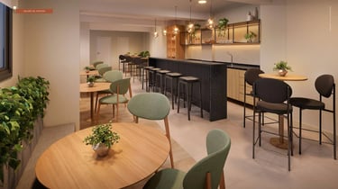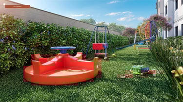 PRAÇA CENTRAL COM MUITA VEGETAÇÃO, TRAZENDO O VERDE DA NATUREZA PARA O EMPREENDIMENTO