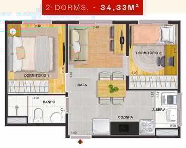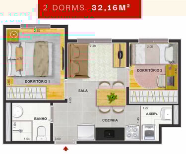 32m² - 02 Dorms. sem terraço - Final: 19 (unidades de meio).