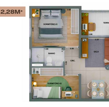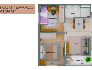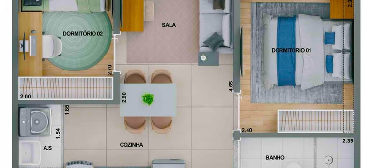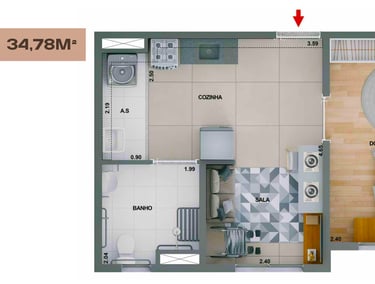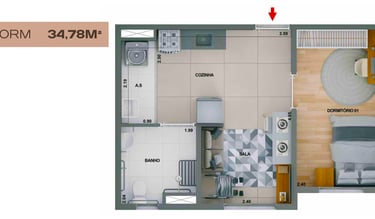 41m2 - 2 Dorms com Varanda, meio – Final 07