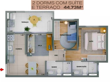 45m2 - 2 Dorms com Varanda e Suite, ponta – Final03
