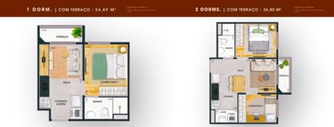 38m² - 02 Dorms. com terraço - Finais: 06 e 07 (unidades de ponta).