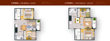 38m² - 02 Dorms. com terraço - Finais: 29 e 30 (unidades de ponta).